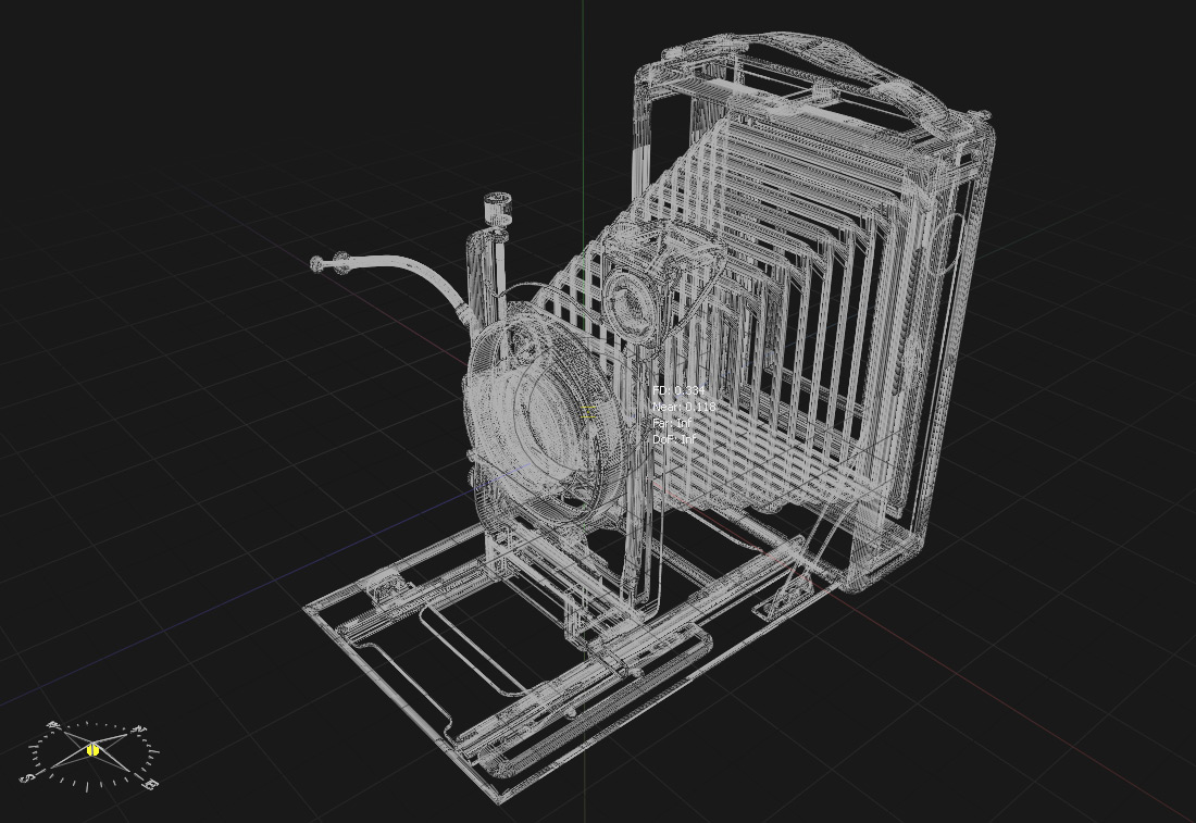 Wie erhaben sie in der Ecke stand; auf dem Stativ in den Raum suchend, mit wachem Objektiv auf Motive wartend. Sie war zu schade, um zu verstauben. Wir wollten sie festhalten, so wie sie viele kleine und große Momente des Lebens für die Ewigkeit festgehalten hat – so konstruierten wir ihre Einzelteile in millimetergenauer und maßstabsgetreuer Detailarbeit nach und setzten die alte Dame in eine würdevolle Szene. Nun ist sie selbst zum Motiv geworden – von analog zu digital.